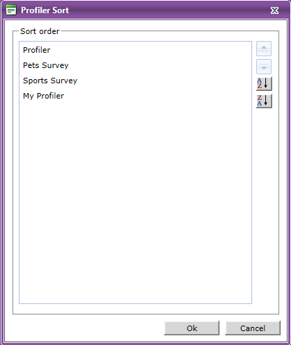 To change the sort order, click on a profiler and use the sorting arrows to move the profiler up or down one position. The profilers can also be sorted in alphabetical or reverse alphabetical order.